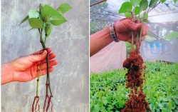 Hồ tiêu Vĩnh Linh ươm bằng dây thân, bộ rễ phát triển mạnh, cây khỏe.