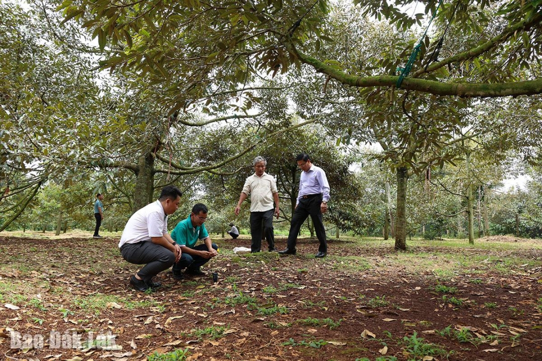 Sau khi thu hoạch vụ sầu riêng vừa qua, ông Phạm Văn Dần (thôn Hòa Thành, xã Ea Knuếc) vô cùng lo lắng khi hơn 100 cây sầu riêng từ 8 - 10 năm tuổi rụng lá hàng loạt, trơ cành xơ xác. Qua theo dõi vườn cây, ông nhận định nguyên nhân đến từ việc ông đã phun một loại chế phẩm lên thân, lá vào giai đoạn chuẩn bị phân hóa mầm hoa. Sau khi phun chế phẩm này, vườn sầu riêng nhanh chóng già lá, lá dày bóng và nứt nhiều “mắt cua”. Số lượng hoa và tỷ lệ đậu trái non cũng cao hơn hẳn so với năm trước. Tuy nhiên, chỉ sau một thời gian ngắn, cây sầu riêng đang mang trái non bắt đầu có dấu hiệu cháy lá rồi rụng dần. Trong khi đó, những cây sầu riêng dưới 4 năm tuổi chưa ra hoa thì không có tình trạng cháy lá vì không phun chế phẩm kể trên.